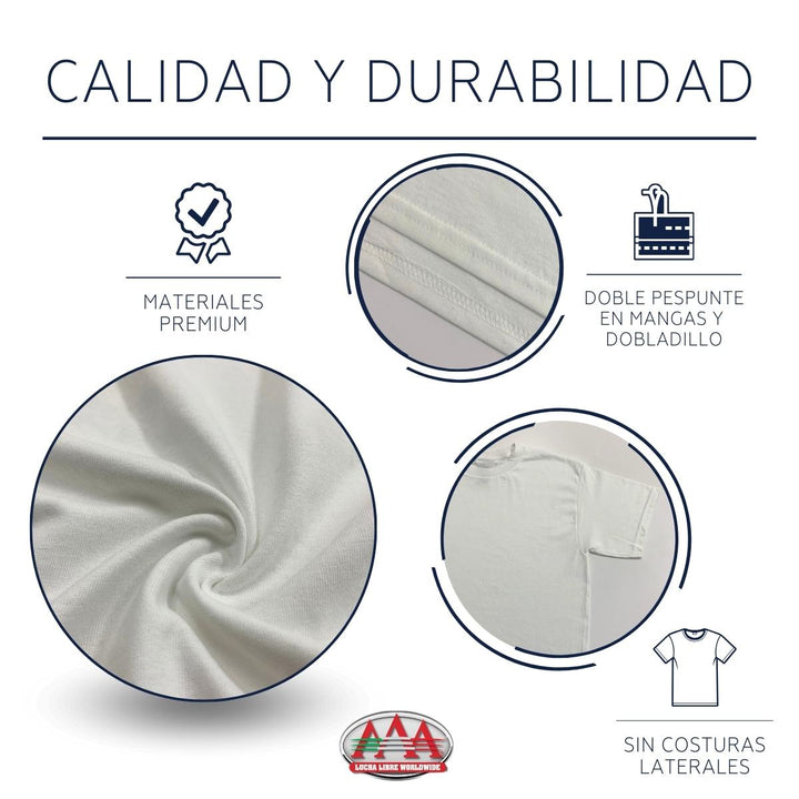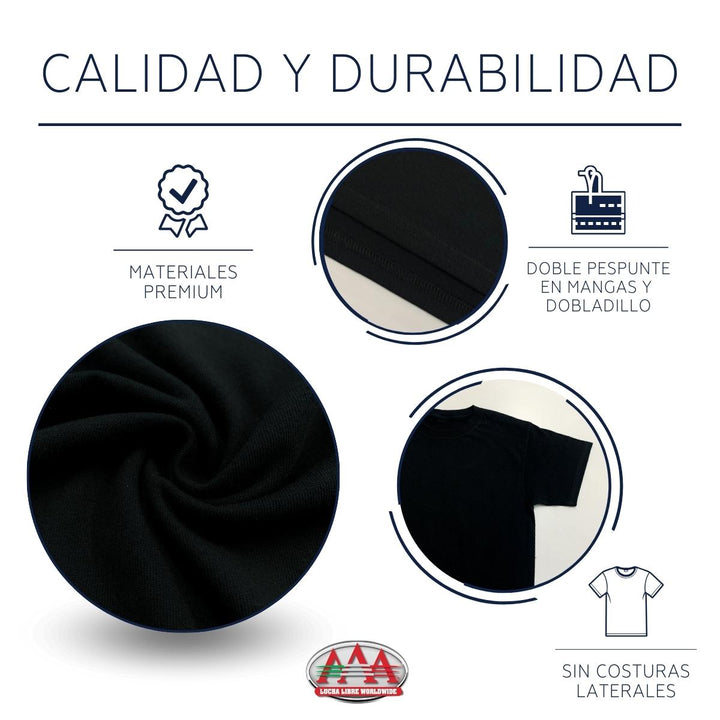 - ORIGINALIDAD Y SOSTENIBILIDAD: Playera infantil de manga corta, Producto Oficial con un diseño original de Lucha Libre AAA impreso con tecnología DTG (directo a la prenda) tacto cero. Se utilizan tintas ecológicas sin contaminantes que se adhieren a las fibras de la ropa, garantizando calidad, colores vivos e imagen de larga duración en la camiseta sin comprometer el planeta. La playera cuenta además con etiqueta que garantiza un producto 100% original de Lucha Libre AAA.
