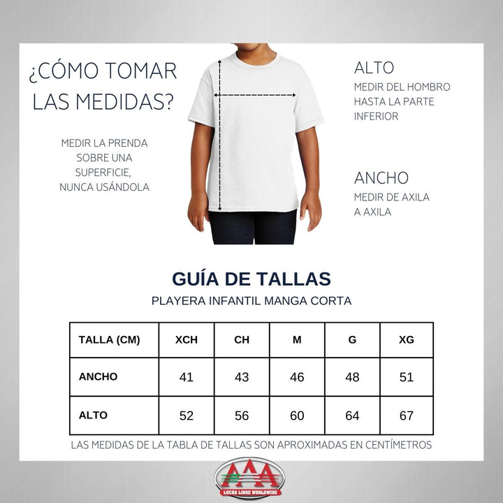 - VERSATILIDAD Y LIGEREZA: Playera deportiva o casual de niño o niña, ideal para usar en cualquier momento y lugar, una excelente opción para los fanáticos de Lucha Libre AAA y los amantes de la moda casual, permitiendo lucir una playera única y con estilo propio, brindando una sensación de frescura y ligereza al portarla, siendo ideal para las temporadas más cálidas en el uso diario o actividades deportivas.