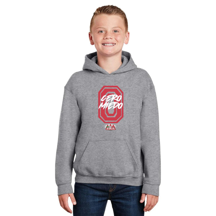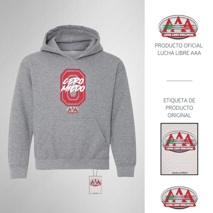 Sudadera hoodie infantil con gorro o capucha y bolsillo frontal canguro nueva, para niño o niña, Lucha Libre AAA oficial, diseño Pentagón Jr 0 Miedo original impreso con tecnología DTG (directo a la prenda) tacto cero, uso casual o deportiva, 50% algodón y 50% poliéster fleece pre encogido, estructura tubular con ajuste clásico. Colores de sudadera: Negro, Gris.