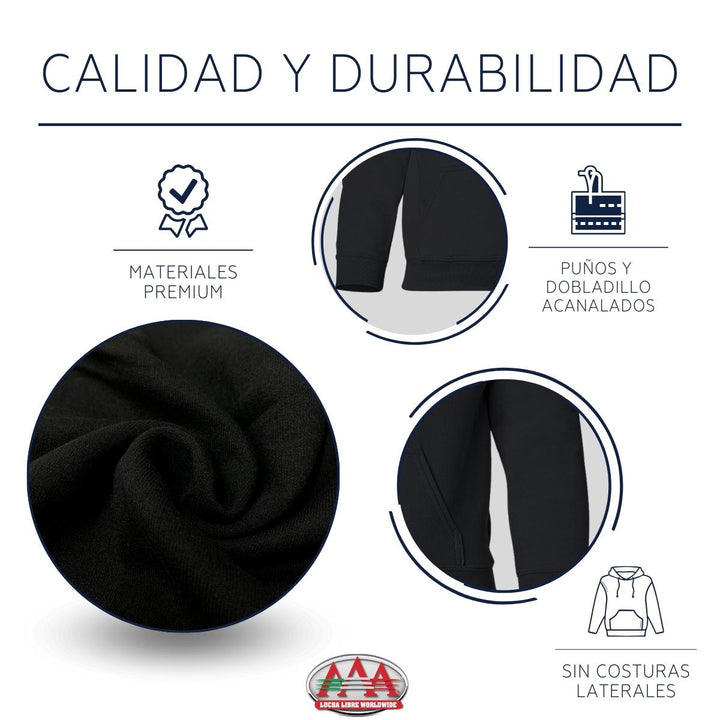- VERSATILIDAD Y LIGEREZA: Sudadera deportiva o casual, ideal para usar en cualquier momento y lugar, una excelente opción para los fanáticos de Lucha Libre AAA y los amantes de la moda casual, permitiendo lucir una hoodie única y con estilo propio, brindando una sensación de calidez y ligereza al portarla, siendo ideal para cubrirse en el uso diario o actividades deportivas.